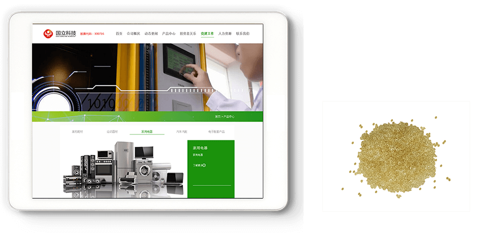 國立科技以大力推行節能低碳環保材料,發展科技產業,以推動世界綠色環保節能低碳為理念,專注低碳、環保、再生高分子材料及高分子材料制品的研發、生產、銷售和技術服務,產品被廣泛應用于高檔鞋材、成品鞋、電子配套產品、運動器材、家用電器、汽車汽配等領域。