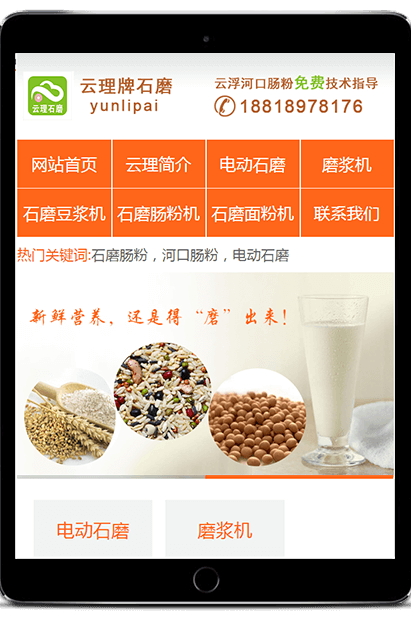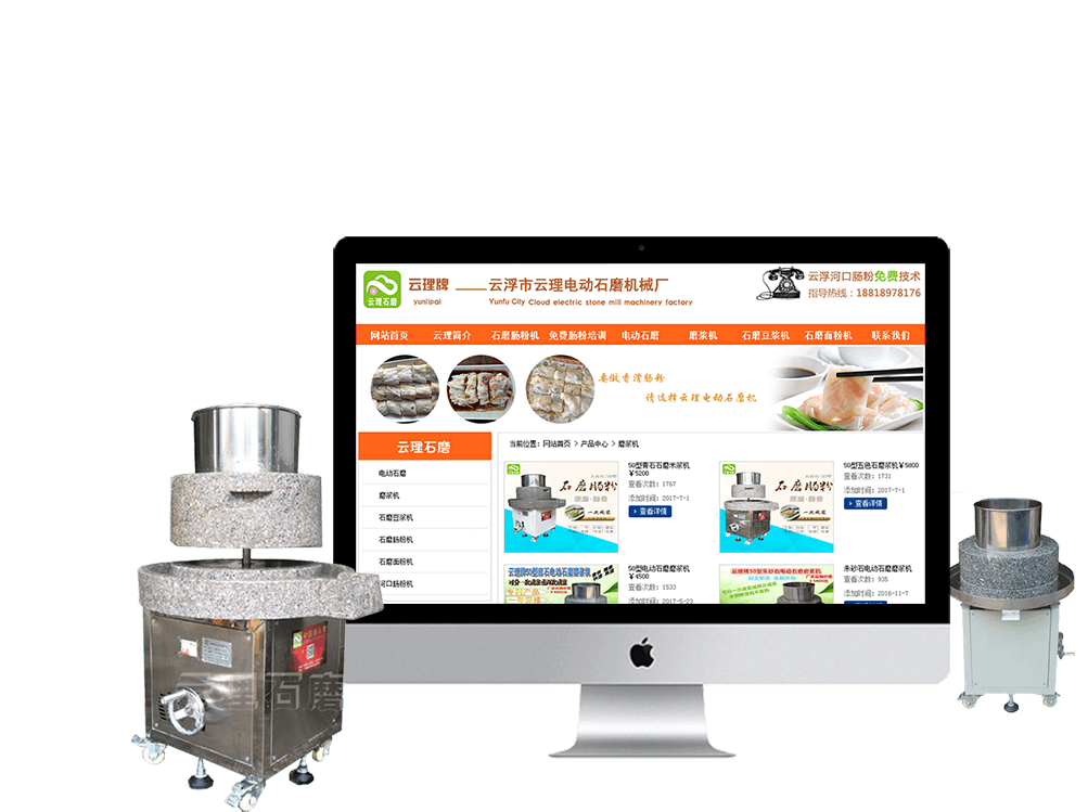 網站整體架構簡潔,功能清晰,能夠很好的展示產品類別,降低訪客快速瀏覽搜索目標所需要的時間,同時突出云理石磨的電動石磨及腸粉機等,滿足客戶瀏覽的需求,增強用戶體驗。