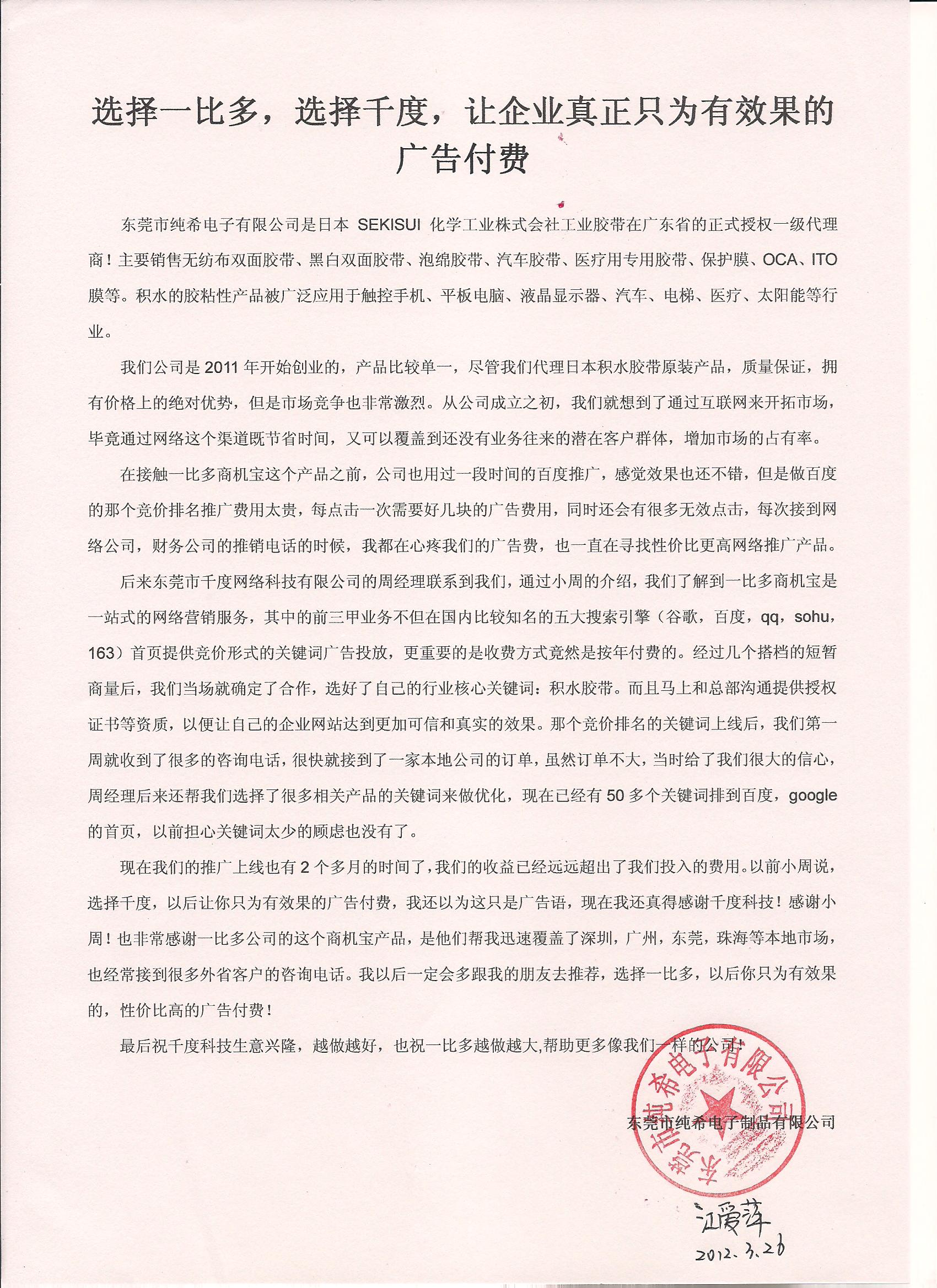 東莞市純希電子有限公司是日本SEKISUI化學(xué)工業(yè)株式會(huì)社工業(yè)膠帶在廣東省的正式授權(quán)一級代理商!主要銷售無紡布雙面膠帶、黑白雙面膠帶、泡綿膠帶、汽車膠帶、醫(yī)療用專用膠帶、保護(hù)膜、OCA、ITO膜等。積水的膠粘性產(chǎn)品被廣泛應(yīng)用于觸控手機(jī)、平板電腦、液晶顯示器、汽車、電梯、醫(yī)療、太陽能等行業(yè)。