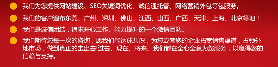 我們有15年的網絡推廣經驗,為1027家企業提供網絡營銷服務! 我們是致力于做廣東效果更好的網絡推廣外包服務商。 我們有自主核心技術,讓廣東數百萬中小企業只為有效果的網站付費! 我們提供短視頻矩陣關鍵詞優化、短視頻運營、SEO優化、網站建設等網絡營銷外包服務。 我們的客戶遍布東莞、廣州、深圳、佛山、江西、山西、廣西……更多+