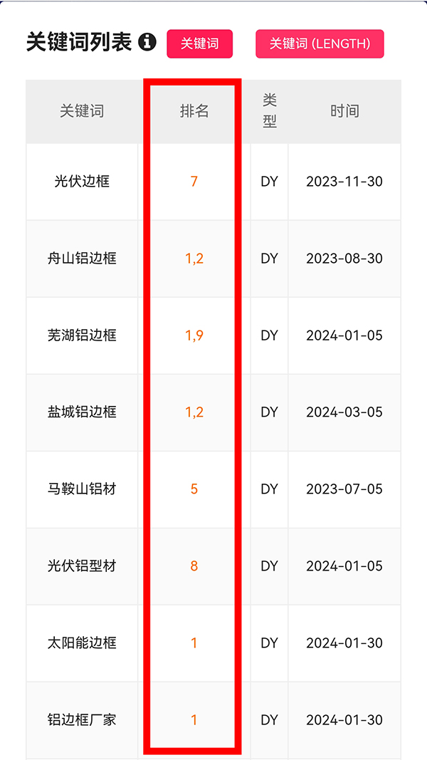 3個月鋁材453個詞上首頁 每天2咨詢,短視頻SEO優化找【千度網絡】。系統的定位體系,內容體系,運營體系,3-7 天關鍵詞快速排名,讓你實現關鍵詞霸詞霸屏霸網。短視頻矩陣SEO優化推廣,讓企業快速進入短視頻時代。