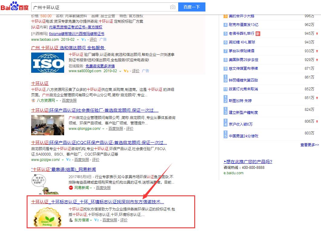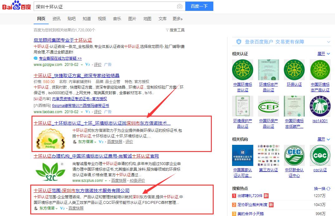 東莞seo優化案例—十環認證首頁穩定排名三年