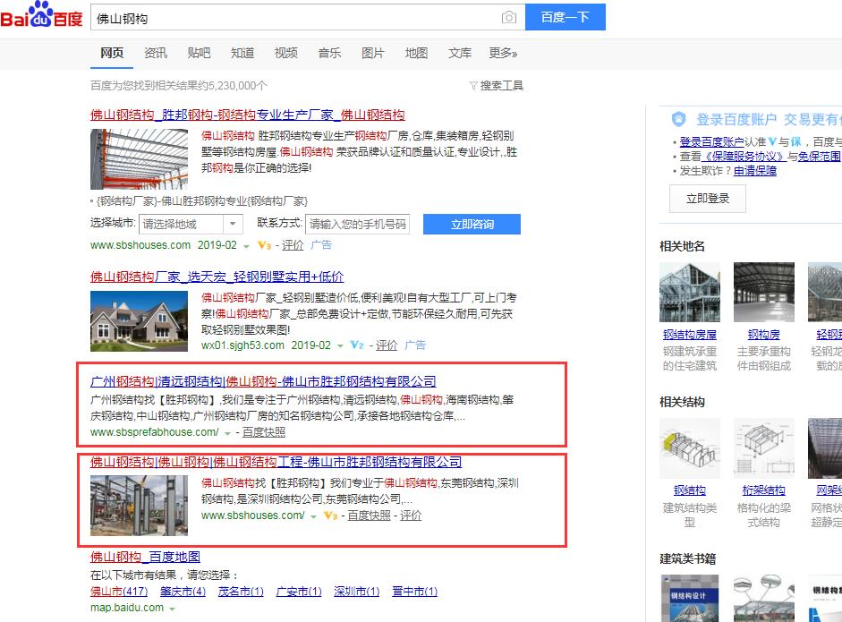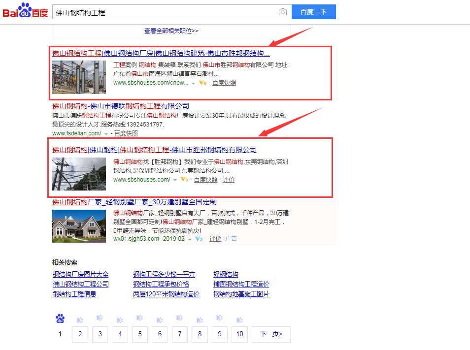 佛山勝邦鋼結構有限公司跟千度網絡合作有四年了,在第一個網站優化排名穩定,效果顯著的情況下,梁總,又增加了一個新的網站做周邊區域業務拓展。目前雙網站百度首頁排名穩定,不斷拓展業務,同時公司海外業務拓展業績也在行業內遙遙領先。