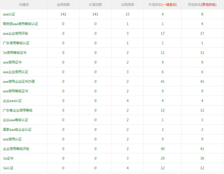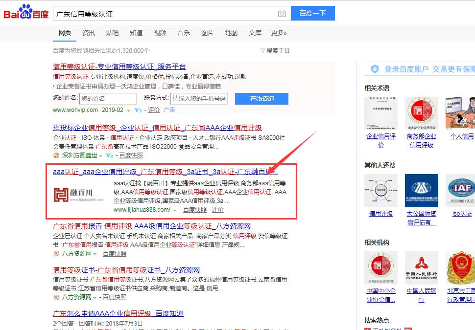廣東融百川企業管理有限公司(原深圳市禮佳華資信評估有限公司)跟千度網絡合作網絡推廣接近五年整了,多年來,企業核心業務關鍵詞“aaa認證、企業aaa等級認證”穩定排名搜索引擎首頁,并于2014成功幫助李總接到一個幾百萬的大項目。感謝李總多年來的信任與支持。