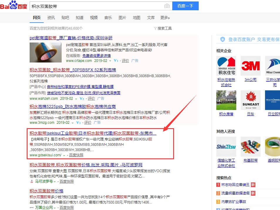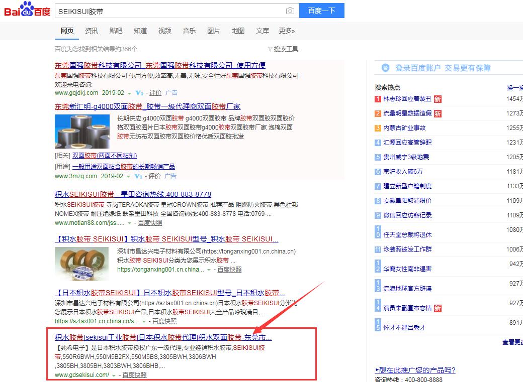 純希電子是國際知名品牌日本積水膠帶在中國的代理商,為了提高自己的知名度,同時整合行業內資源,江總找到千度網絡,千度網絡一個月內將品牌核心詞“積水膠帶”做到首頁,目前已經合作快6年整了。感謝江總,王總的信任和支持。域名年齡5年11月4天(創建于2013年03月19日,過期時間為2020年03月19日)