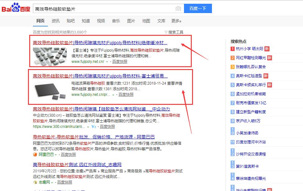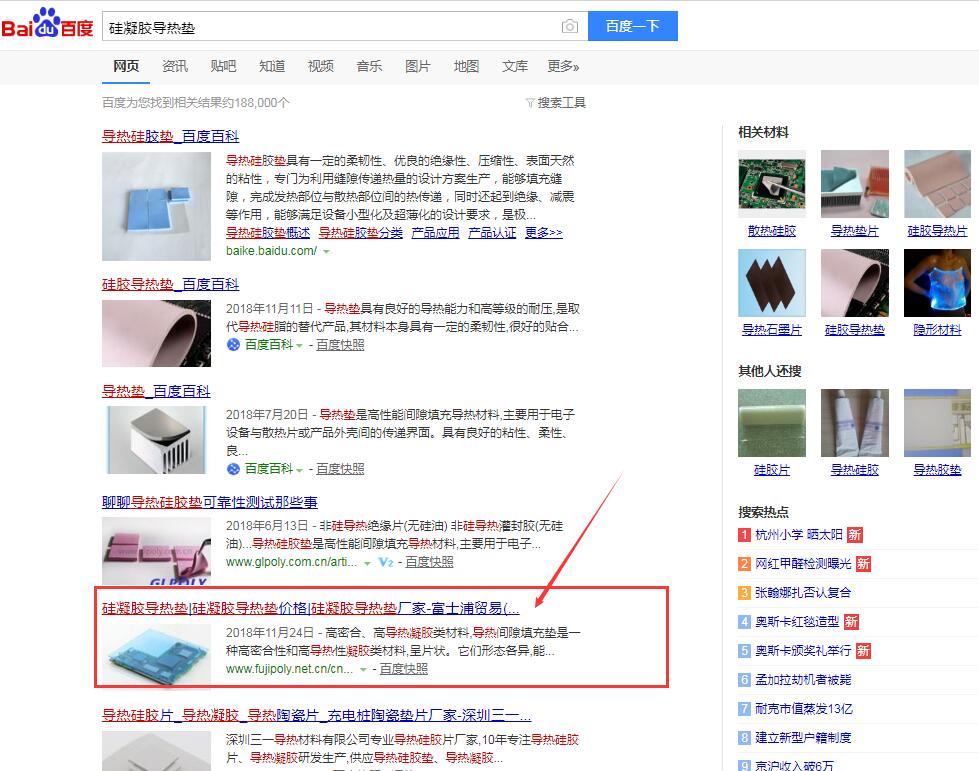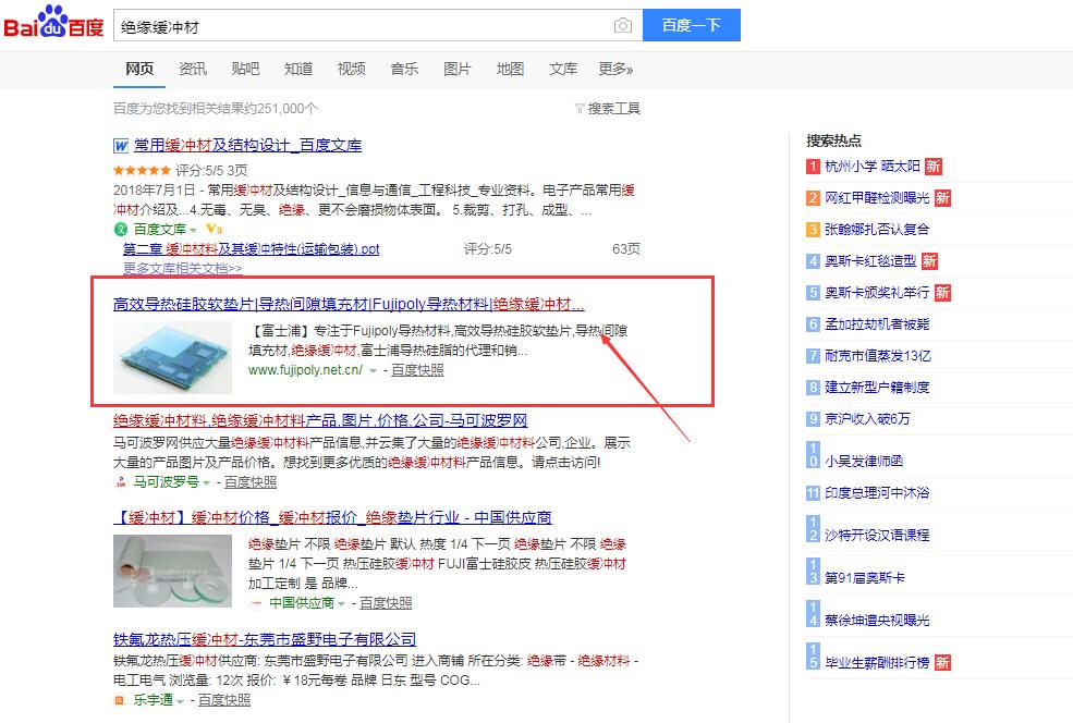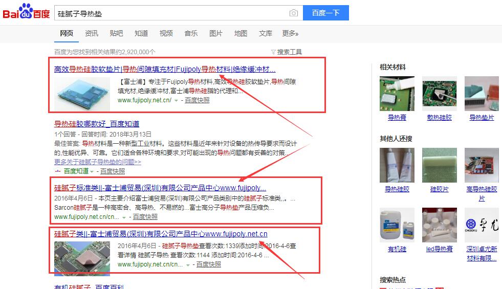深圳富士浦是日本知名硅膠品牌Fujipoly在大中華區的代理商,跟千度網絡合作五年來,公司精準產品關鍵詞都在百度等搜索引擎首頁穩定排名。