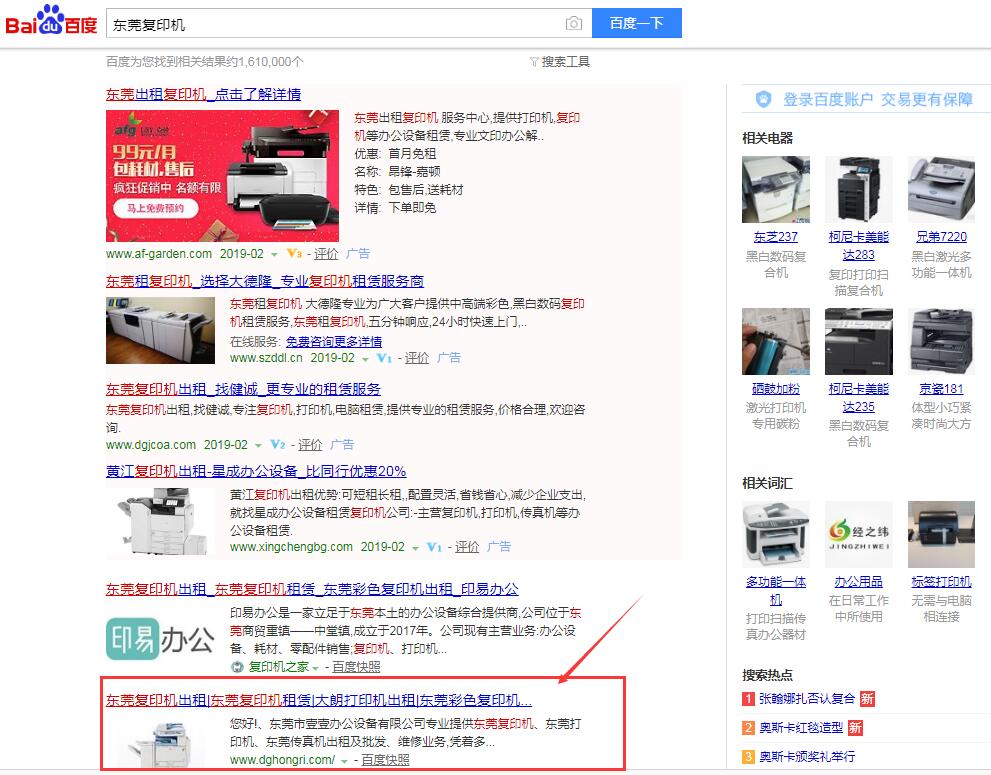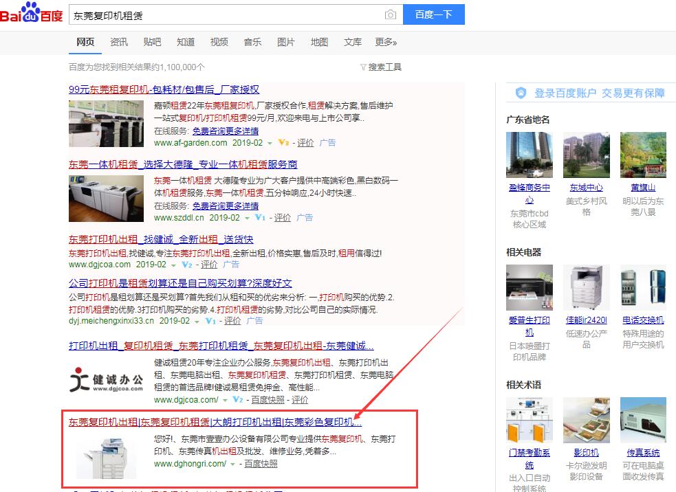 壹壹辦公設備是在只做東莞大朗附近復印機租賃的辦公設備公司,在找到千度網絡合作前也是跟本地很多網絡公司合作過,有的排名上不去,有的排名不穩定,有的服務跟不上,找到千度合作后,目前網站穩定首頁2年了,也接到不少附近工廠公司的長期合作訂單。