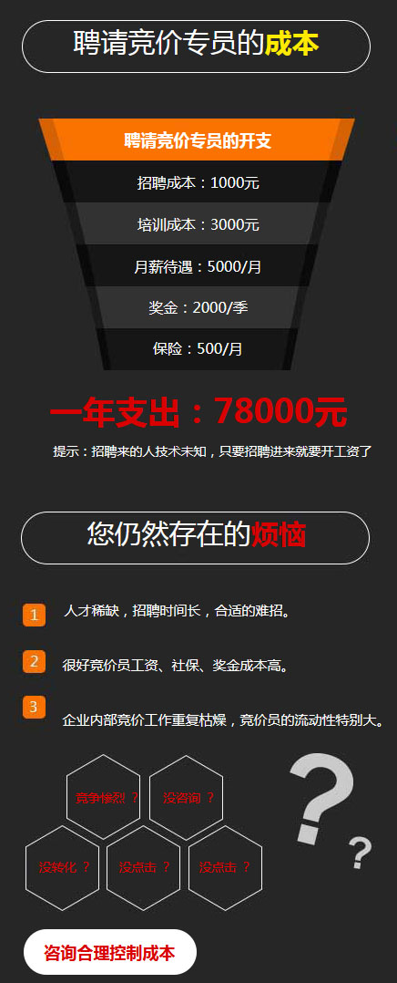 通過精準數據分析,利用獨有的開源技巧提高優質訪客流量;廣告投入不變的情況下,把咨詢總量(訂單總量)在原有基礎上提升至少30%以上。03.降低平均點擊價格